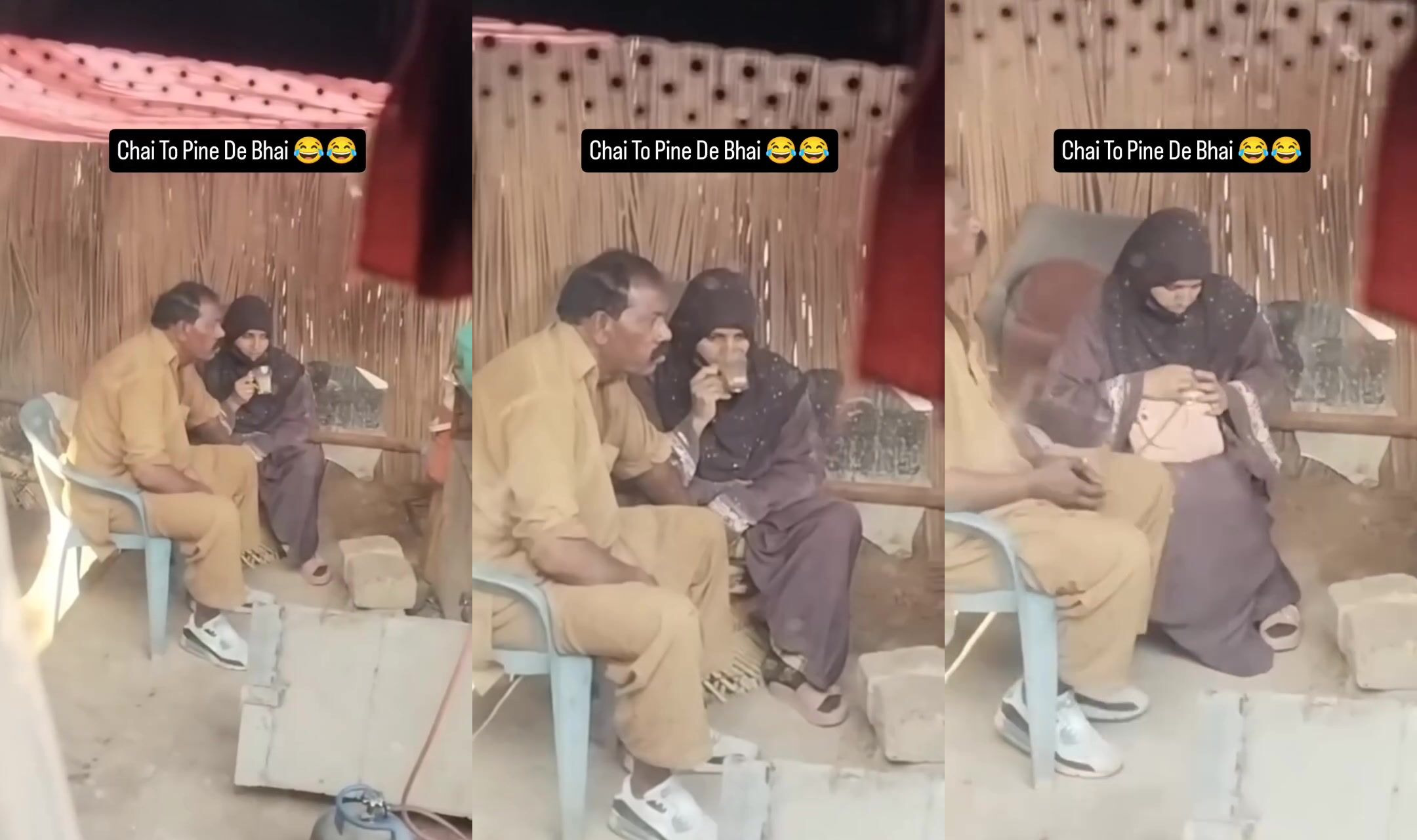 Shauhar apne beghum ke sath bike se Karachi ki taraf jaa raha tha. Raste me unhe ek dhaba dikha to dono waha chai pine ruk gaye. Beghum chai pi rahi thi aur shauhar uske burke me hath dalkar uski chut me ungali karne laga. Beghum bhi use apni chut me ungali karne de rahi thi. Idhar parde se kisi ne chupke se unka video bana liya.